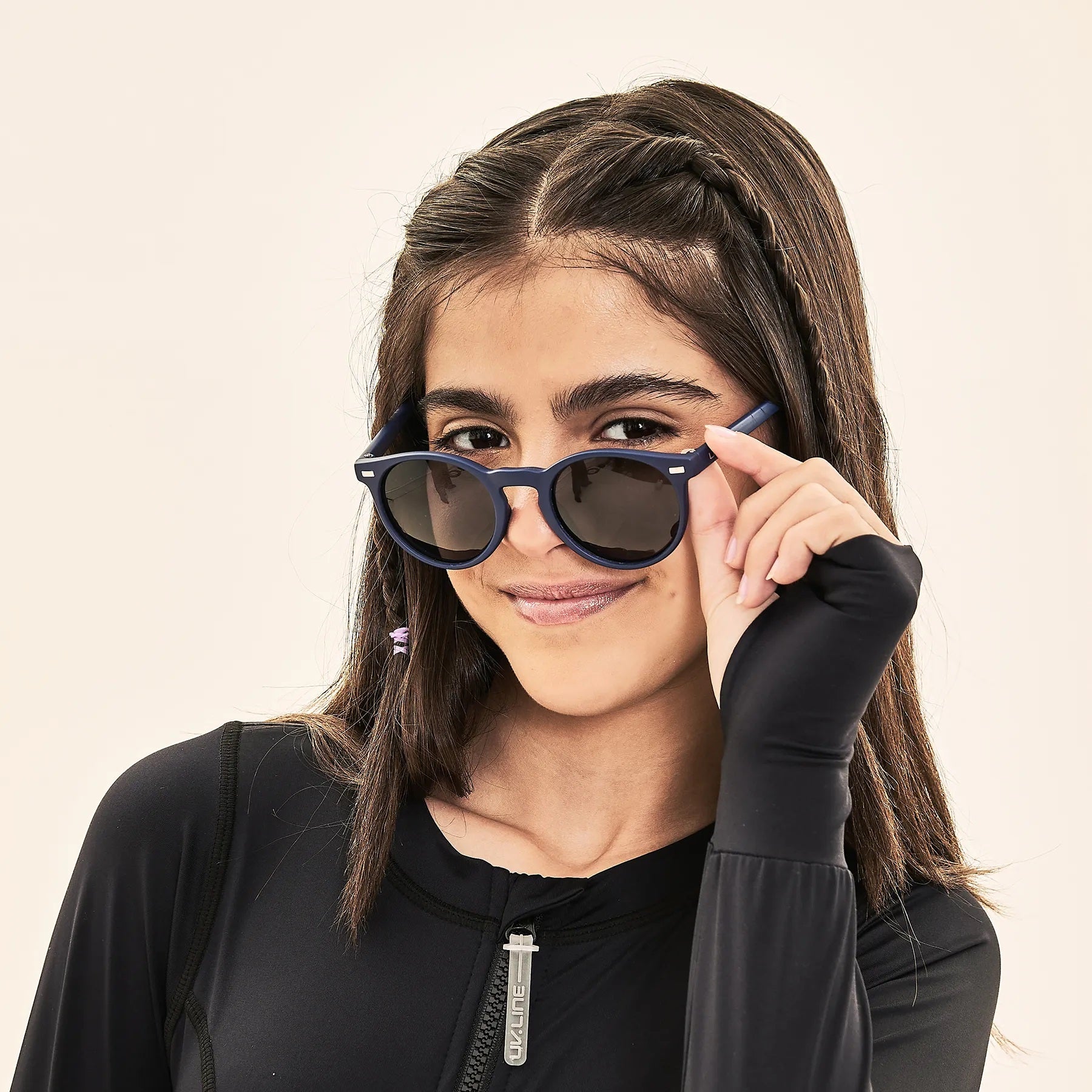 • Carica l'immagine nel visualizzatore di Gallery, Model Front: Uv Line Lunettes De Soleil Kids Sunglasses Navy Uv400