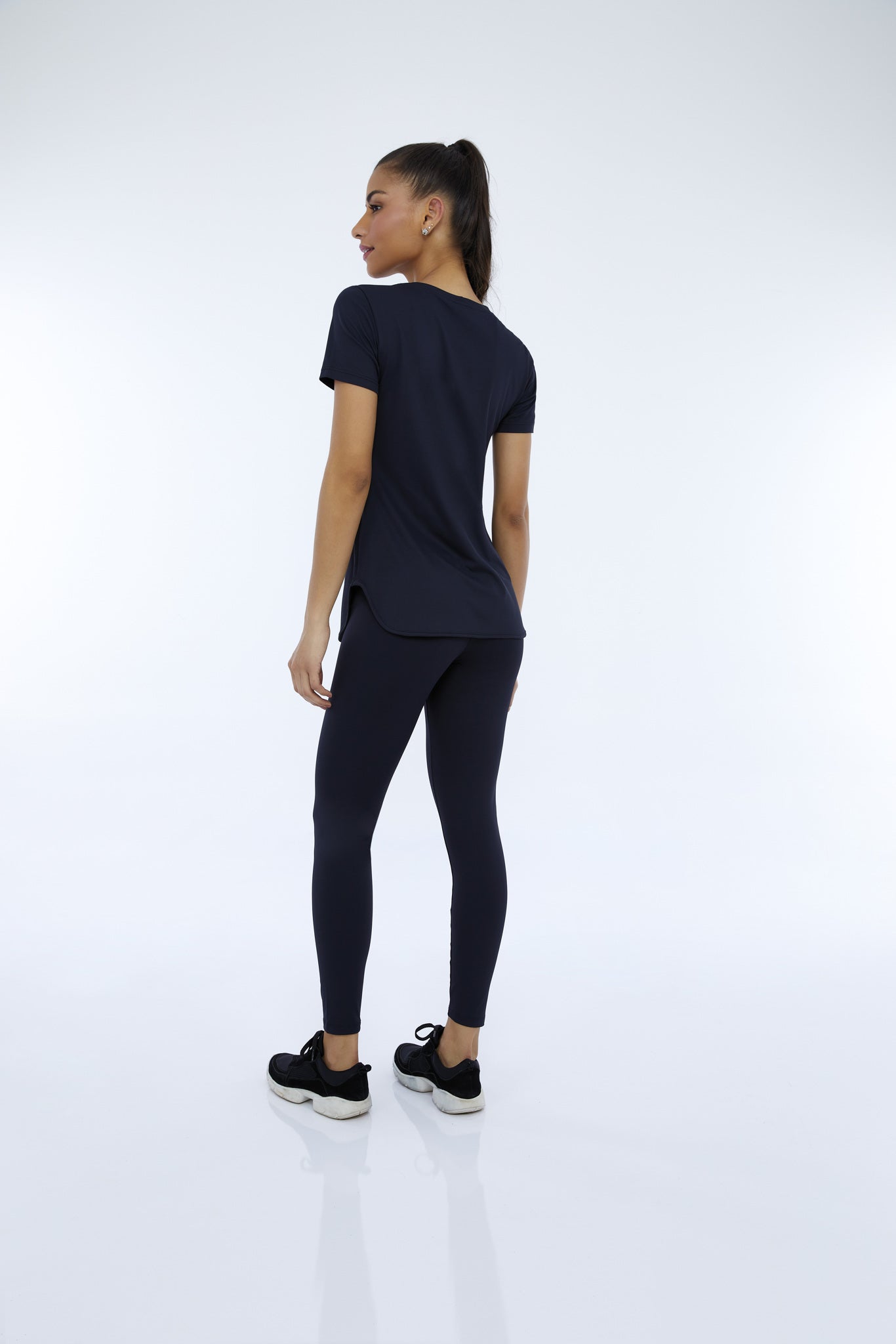 Skin Fit T-Shirt Alongada Gola V Preto